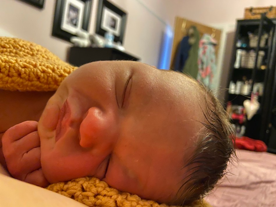 The first night he was home he cluster fed, small and very often. Basically he lived on the boob all night. Sal was knackered come the morning. He just wasn’t happy off it. Sal was still producing only Colostrum as her milk wouldn’t come in for a few days yet. The midwife said the cluster feeding helps regulate Sal’s hormones and helps with the milk production. I actually went out the following morning and called in at Tesco, bought some Cow & Gate first milk, hoping it might fill him come the next night. He didn’t need it and we had a much better night.